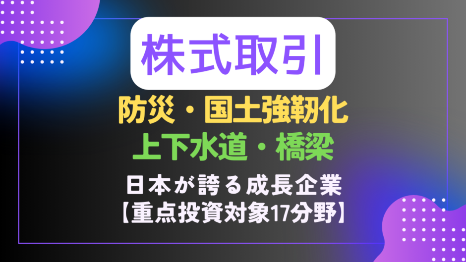 この記事では重点投資対象17分野のうち「防災・国土強靭化」に関しての日本上場企業についてまとめてみた記事になります。