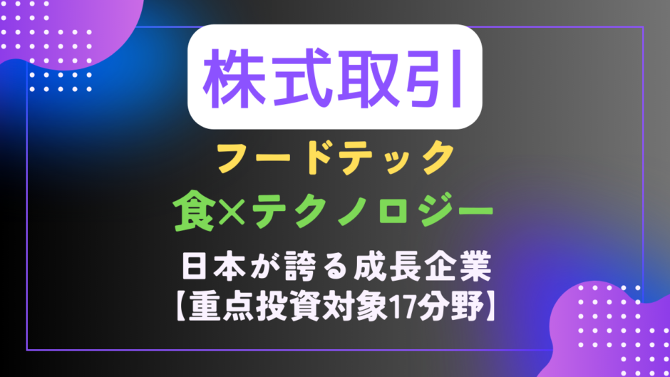この記事では重点投資対象17分野のうち「フードテック」に関しての日本上場企業についてまとめてみた記事になります。